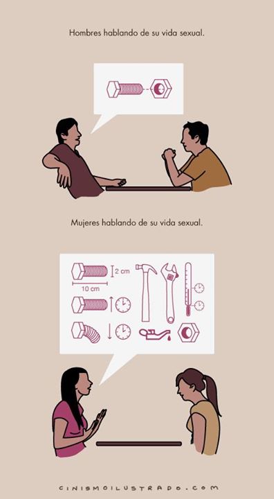 Muy representativa esta imagen, Es muy cierto que los hombres piensan más en el sexo que las mujeres, o que ellas son las que mayor cantidad de intimidades cuentan entre sus amigas, mientras que ellos comentan solamente sus conquistas. ESto se debe a que las mujeres son mas expresivas y los hombres mucho mas reservados. Me gustaria invitarte a esta pagina http://www.tienda-virtual-erotica.com/ y conozcas sobre temas de sexologias, consejos y noticias actualizadas sobre sexualidad.