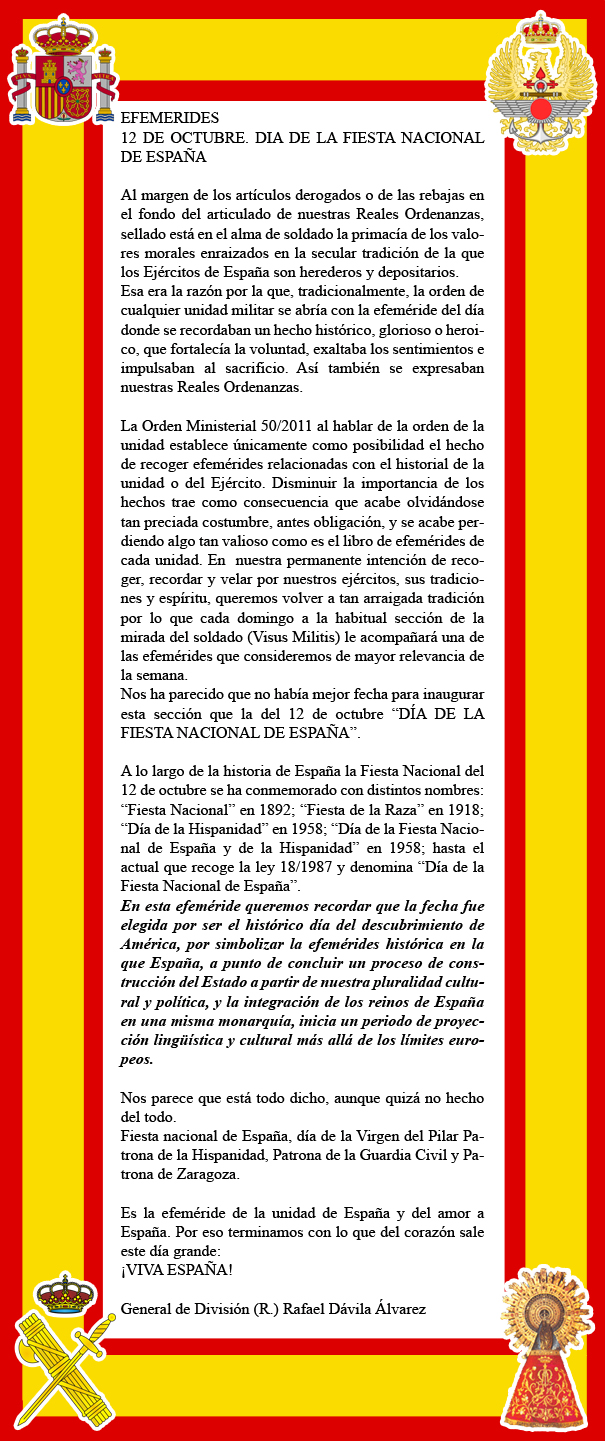 EFEMÉRIDES:12 DE OCTUBRE 2016 DÍA DE LA FIESTA NACIONAL DE ESPAÑA