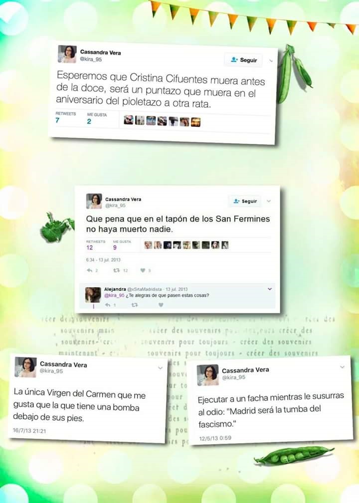 Tuits de Cassandra, atentatorios contra personas e imágenes religiosas.
