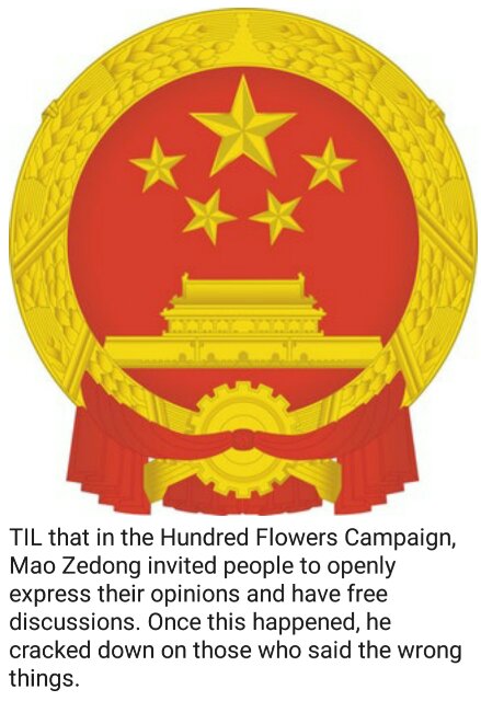En la Campaña de las Cien Flores, Mao Zedong invitó a que la gente expresara abiertamente sus opiniones y tuvieran debates libres. Una vez sucedido, fue tras los que habían dicho las cosas equivocadas.