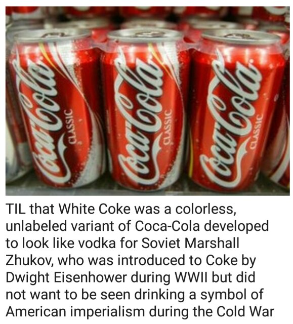 La Coca-Cola Blanca fue una variante no clasificada que Coca-Cola desarrolló para que pareciera vodka para el Comandante Soviético Zhukov, a quien Dwight Eisnhower le introdujo la Coca-Cola durante la Segunda Guerra Mundial pero no quería que se le viera bebiendo un símbolo del Imperialismo Americano durante la Guerra Fría.
