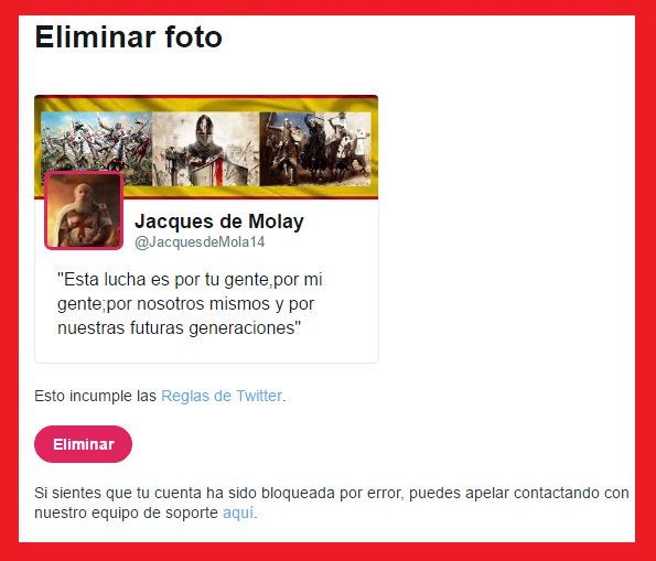 Pese al gran valor histórico que tienen los caballeros templarios, Twitter está decidido a seguir con su hipocresia y su defensa del ‘progresismo’ más radical faltando al respeto de millones de personas.