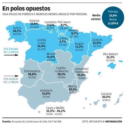 Andaluces y Extremeños son los españoles con más riesgo de caer en la pobreza, de hecho según los últimos datos de AROPE es en los únicos lugares de España que este porcentaje aumenta
