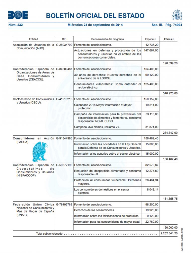 En las siguientes imágenes podéis ver las partidas exactas por las que han sido subvencionados.