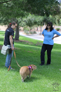 I have been following them on facebook but this was my first opportunity to meet Romeo and Tuff’n. Dick (The Bartender) met them last year, but none of his descriptions or photos prepared me for the dedication of their owners. These capybara «brothers» are truly central to the life of their owners! So they go to the park every day!