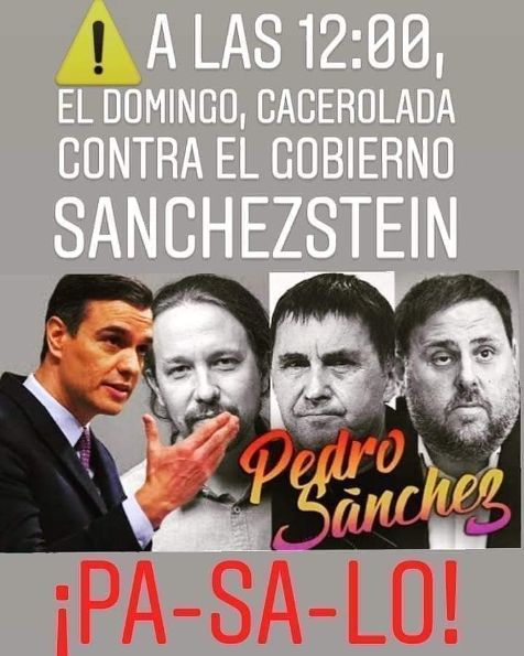 Cartel anunciador de la cacerolada contra el negligente Gobierno de Pedro ‘Plagio’ Sánchez.