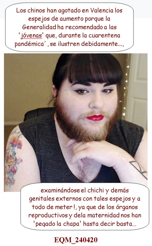 Preguntarse hasta qué extremos caricaturescos llegara el feminismo progresista es tanto como hacerlo inquiriendo a la población cuánta es su capacidad de aguante con el trilero Pedro Sánchez. Ya hemos comentado en otras ocasiones que nuestra paciencia parece no tener fin y no menos espero de las excentricidades vaginales… . Cuando la esencia del sexo sigue consistiendo, desde siempre, en que el donante y la tomante no varían su conductas. Esto es, en que el donante es generoso en su donación , dando todo lo que puede y quiere, mientras que la tomante suele seleccionar a su provecho aquél que más le atrae o conviene, pensando, también, en la descendencia.