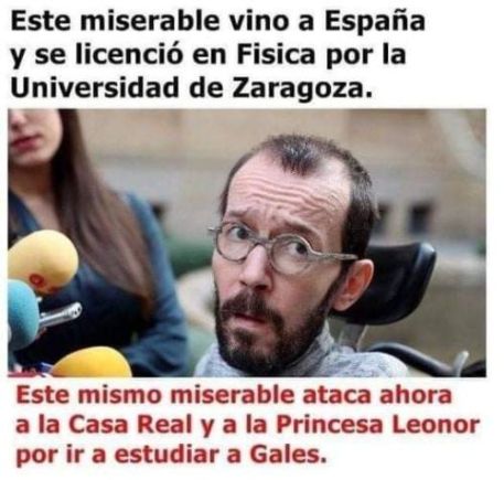 El miserable Chinchenique se aprovechó de las ventajas del Estado español. Las mismas que ahora niega a los inmigrantes. ¡Maldita y miserable ultraizmierda»