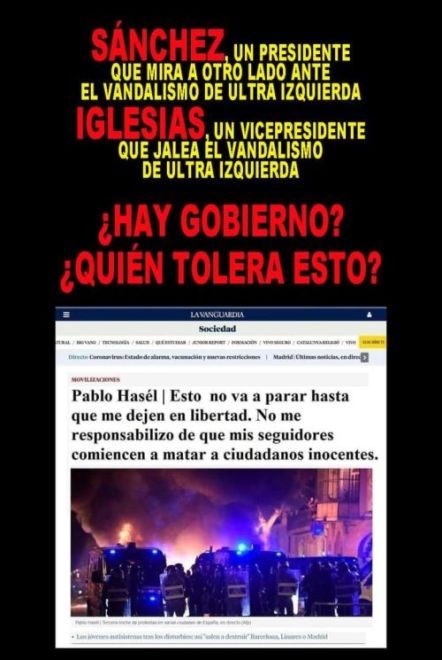 Hasél, asesino en potencia, antidemócrata, fascista en tentativa terrorista y un Gobierno desnortado, destrozado y con claros tintes de paranoia procomunista e indenciaria.