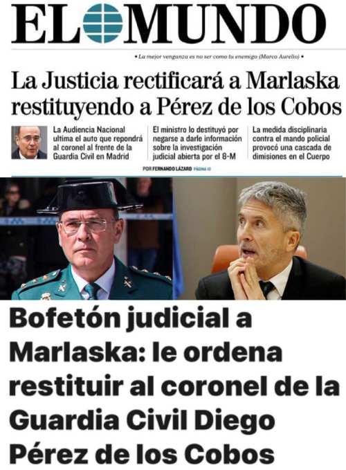 Marlaska restituye en su puesto al coronel De los Cobos. Decenas de asociaicones y organizaciones piden su dimisión ‘ipso facto’.