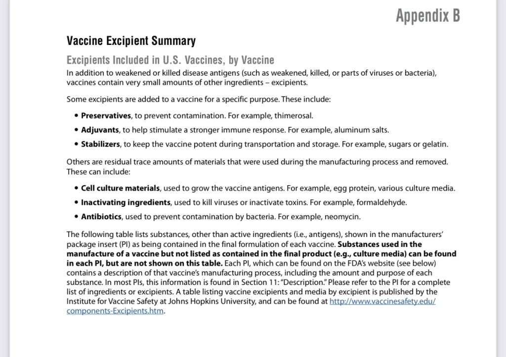 Aquí están sólo ALGUNOS ingredientes de las vacunas.Estos están siendo inyectados en sus hijos.