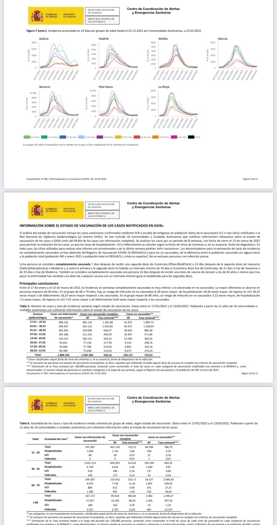 Según el Ministerio de Sanidad, en España, entre el 17 de enero y el 13 de marzo de 2022, SÓLO EL 10% DE LOS CASOS, EL 18% DE LOS HOSPITALIZADOS Y EL 16% DE LOS FALLECIDOS CON DIAGNÓSTICO COVID ERAN NO «VACUNADOS»