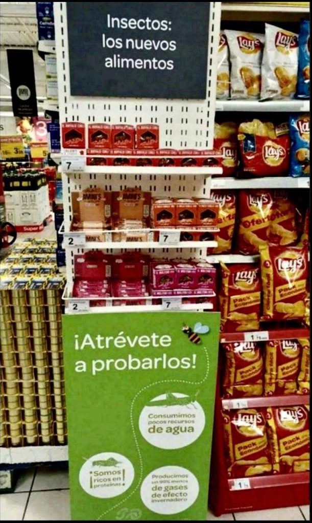Esto es un avance de la agenda globalista. Las personas que establezcan estos artículos, o intenten y exijan el consumo de los mismos, no los consumirán. Las máscaras simples no eran para proteger al portador, son signos de sumisión. Comer insectos será lo mismo. Bill Gates está desarrollando carnes cultivadas en laboratorio, pero el punto a considerar es que exigir lo mismo significa que Bill Gates ganará dinero en el proceso.