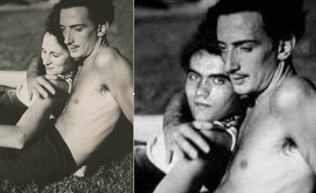 A la izquierda, Salvador Dalí y u esposa, Gala. A la derecha, la relación al gusto de Irene, con la cabeza de García Lorca trasplantada al cuerpo de Gala