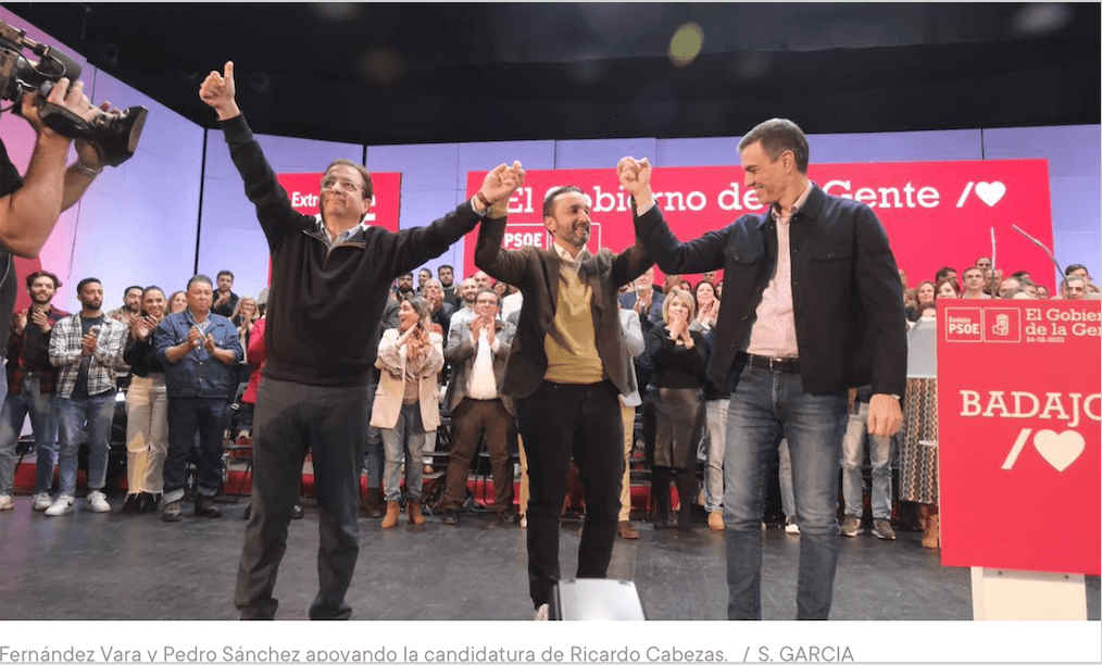 Sánchez llegó ayer a mediodía a Badajoz: lo hizo junto a Pilar Alegría y tuvo como primer acto en la ciudad una visita al instituto Lope de Vega. Pudo aprovechar el viaje para someter a inmersión educativa a la ministra, pero ese aspecto del viaje era un mero pretexto: se trataba de justificar el uso del Falcon. El mitin va a ser amenizado con la murga Los Chungos, un caso de venturosa coincidencia polisémica: la murga, además de sinónimo de comparsa es, en para el DRAE “compañía de músicos malos que en las Pascuas, cumpleaños, etc., toca a las puertas de las casas acomodadas con la esperanza de recibir algún obsequio”. Chungo mantiene, ya digo,una gran afinidad: “de mal aspecto, en mal estado, de mala calidad”. Total, que la murga de los Chungos actuó ayer ante Pedro Sánchez. A tal señor, tal espectáculo.
