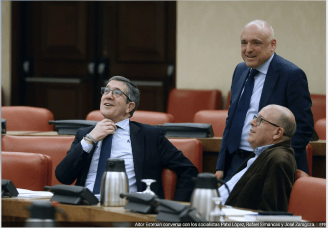 Tres lumbreras sonrientes. Había una cuarta, pero no era socialista ni sale en la foto: Aitor Esteban