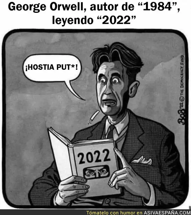 En lo único en lo que Orwell erró de lleno es en la ubicación temporal de su distopía. Lo de Orwell está ocurriendo ahora. Sí, ahora; no en 1984 sino en 2022, o si adelantamos mínimamente el reloj, en 2030. Y de levantar el pobre hombre la cabeza y salir de su tumba, sólo tendría que efectuar, sin tener que modificar en exceso el guion de la novela, una sencilla actualización de la trama, acorde con el signo de nuestra época. Permítanme ponérselo fácil, echándole un poco de ironía y humor.