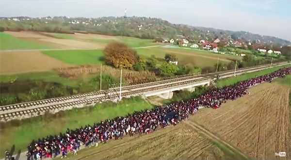 Miles de inmigrantes entran ilegalmente en Eslovenia. Video publicado en YouTube y filmado en octubre de 2015.