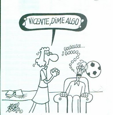 – Pero hijo mío, no le grites a la tele mientras ves el fútbol, pues los jugadores ni el árbitro pueden escucharte.