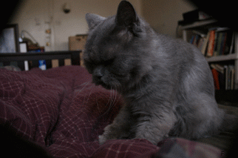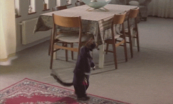 9.- Trae al gato del tejado. Toma otra píldora. Pon al gato en el armario y cierra la puerta sobre su cuello, dejando sólo la cabeza fuera del mismo. Fuerza la apertura de la boca con una cuchara de postre. Arroja la pastilla dentro de la boca del gato con una goma elástica.