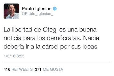 En el debate del pasado día 1, volvió a lucir su axila sudada de macho alfa y es que su carga hormonal debe estar que se sale, como cuando hablaba de azotar hasta sangrar a Mariló Montero, le parecía estupendo que su socio Errejón cobrase una beca indebida, que su cofundador Monedero haya sido expedientado y tenga que pagar a la universidad…, además de su declaración complementaria frente a Hacienda; para terminar con sus alabanzas a Otegui, el apoyo a su candidatura y los aplausos al defraudador social Echenique; buen jotero donde los haya.