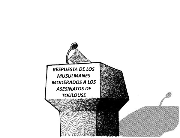 ¿Dónde están ahora los millones de musulmanes tolerantes y moderados –¿y por qué “moderados” si sostienen que ése es el verdadero Islam?– manifestándose por las calles de Europa y por las liberadas tiranías del norte de África contra el asesinato de indefensos niños (judíos)? En ninguna parte, puesto que los musulmanes moderados no son más que peones y, por tanto, su función es proteger a las piezas más importantes del tablero. Lo que sí tenemos es a una treintena de musulmanes que tomaron las calles de Toulouse el pasado sábado para honrar la memoria de Mohamed Merah.