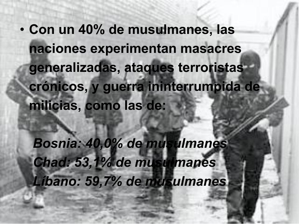 Detrás de todo el problema de la integración y del fracaso multicultural está el terrorismo como recurso del extremismo islámico. Ese fenómeno apenas ha empezado porque, aunque ha alcanzado una violencia suicida sin precedentes y ya no respeta los dos tabúes que lo frenaban, la vida propia y destrucción masiva, todavía no ha traspasado las fronteras de los ataques químicos, bacteriológicos y nucleares, capaces de producir oleadas de pánico desconocidas y reacciones altamente violentas en las culturas de acogida.
